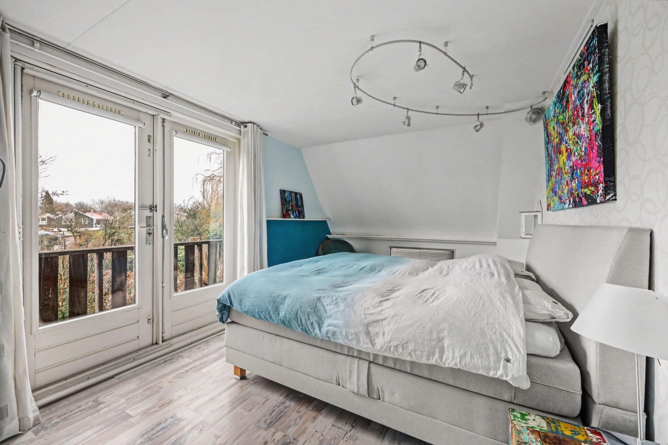 Op de eerste verdieping vind je een ruimelichte hal, die toegang geeft tot drie slaapkamers, de badkamer en de vaste trap naar de tweede verdieping. De royale ouderslaapkamer ligt aan de achterzijde en is duidelijk groter dan de overige kamers. Deze kamer beschikt over een vaste kastenwand en een charmant houten balkon met prachtig uitzicht over de tuin en het water.