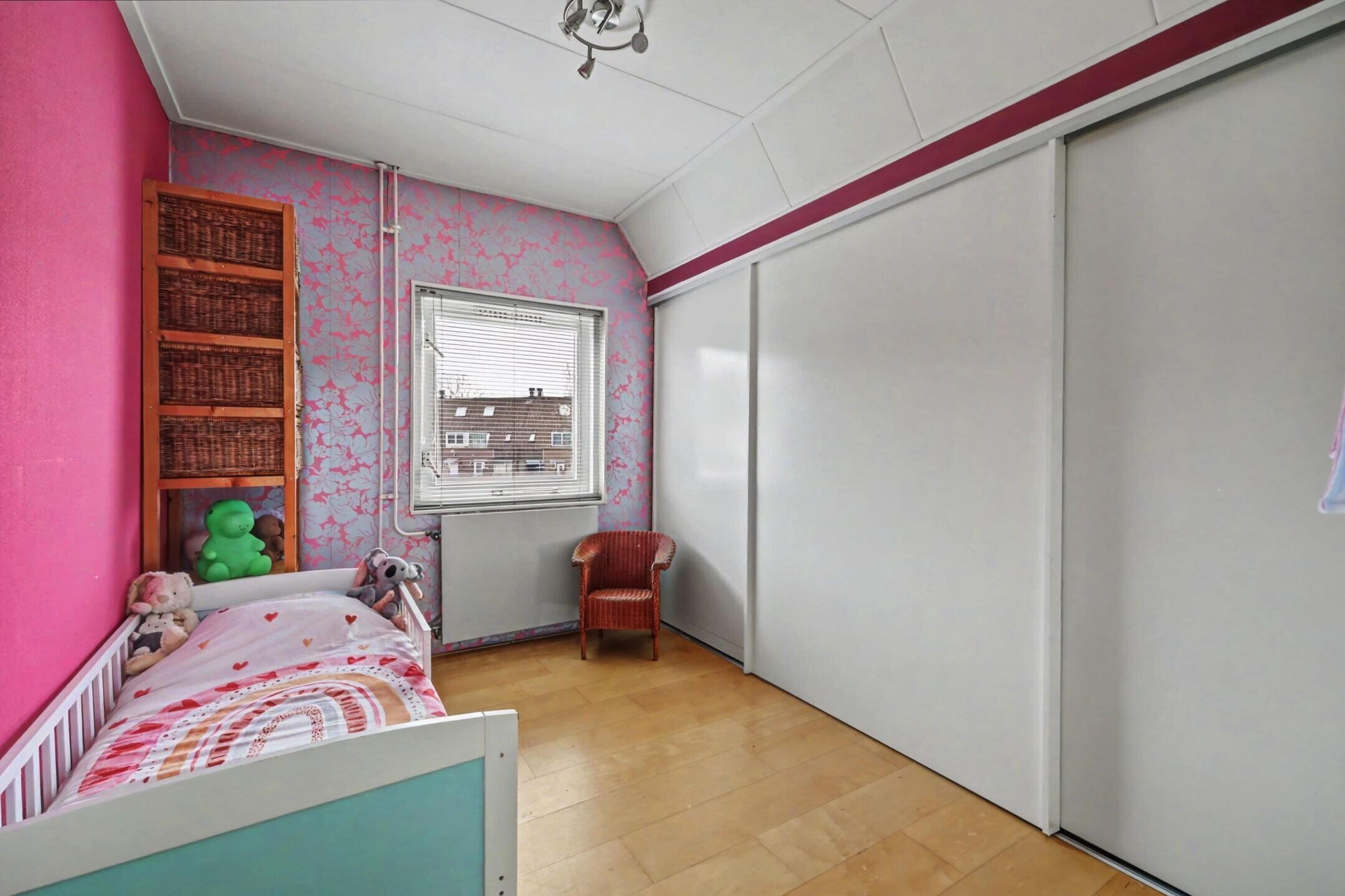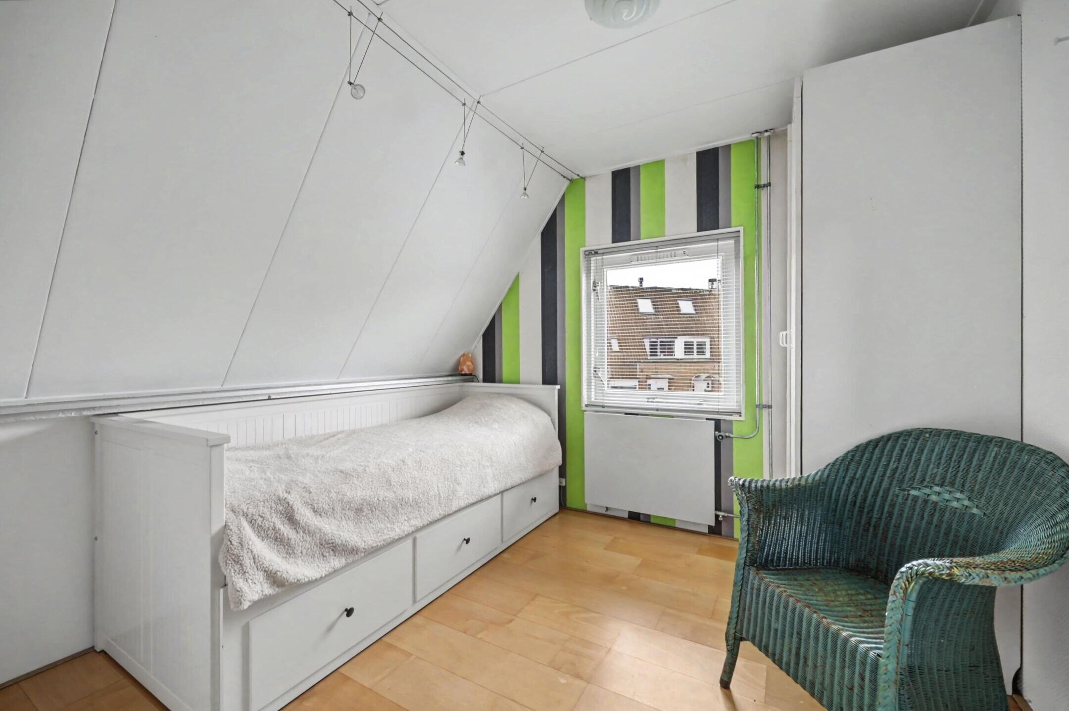 De twee slaapkamers aan de voorzijde, waarvan er een ook voorzien is van een vaste kastenwand zijn iets kleiner, maar nog steeds ruim en uitstekend geschikt als kinder-, werk- of logeerkamer. De badkamer is compleet uitgevoerd met een tweede toilet, wasmeubel met spiegel en een inloopdouche. Een dakraam zorgt voor daglicht en natuurlijke ventilatie.