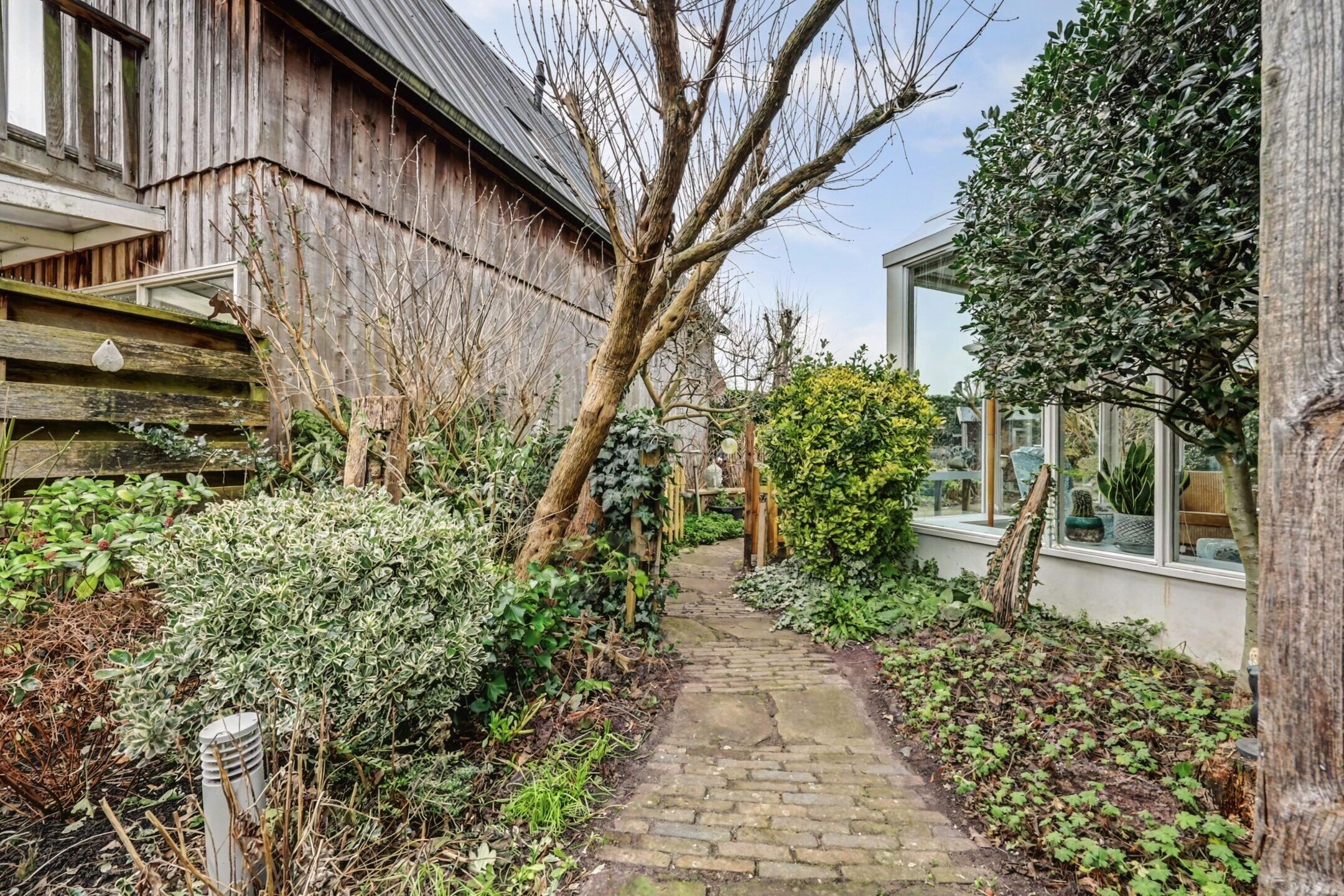 The garden surrounds the house on three sides and is located directly on the water, offering beautiful views and a great sense of freedom. Children can play by or in the water or go boating. The waterway provides access towards Almere Stad and the Kromslootpark. Multiple terraces ensure a pleasant spot in sun or shade.